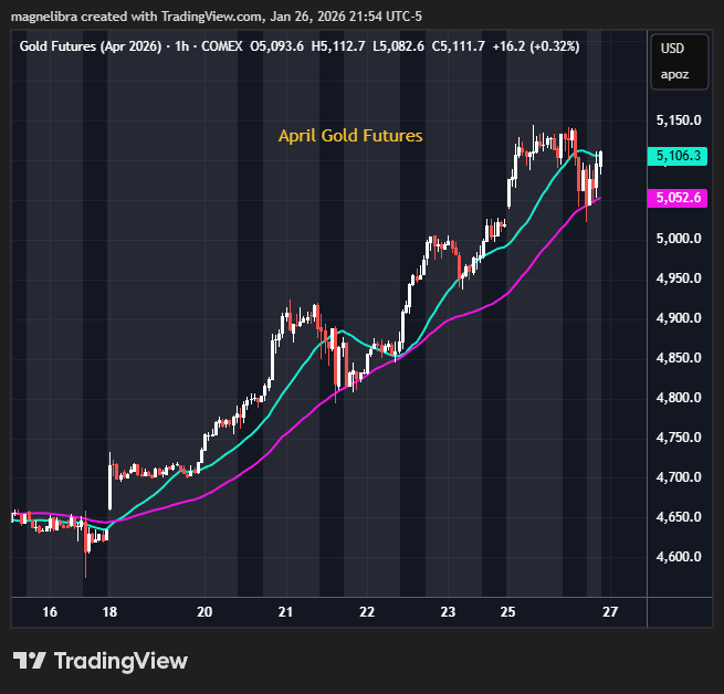 As far as Gold futures we are looking at the April contract now. When looking at the hourly the technical buyers are patient and are buying at the 50pSMA: