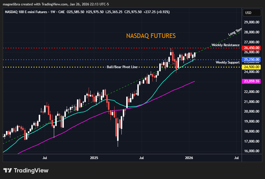 When we look at the March Nasdaq futures, the 26,450 level is an obvious target, we would like to see a test there this week and we suspect if it does it will once again get rejected. FOMC Wednesday may offer the chance for bears to set shorts up there if we reach that level: