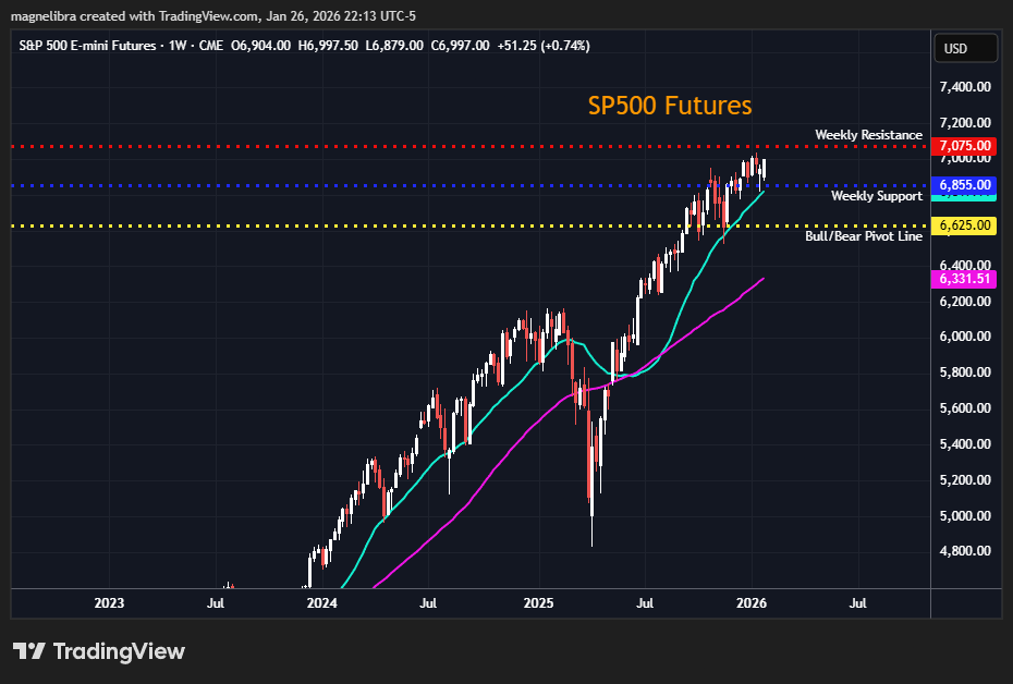 The March SP500 futures are painting the same picture, they are looking at early strength this week to push shorts out, they will most likely succeed, and thus we believe better short locations lie above at the 7050-7075 area: