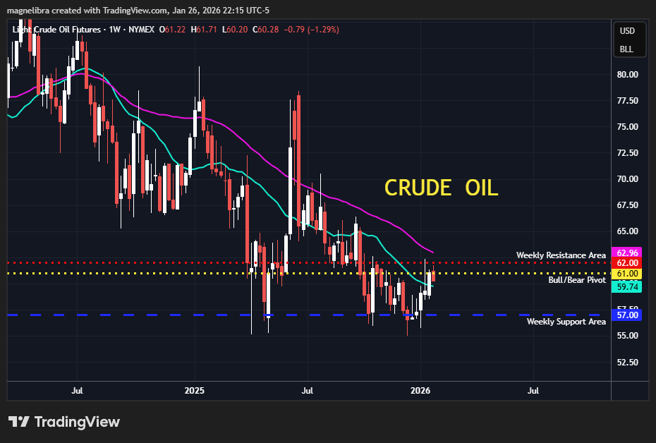 One last tech chart is March Crude, where $61.00 continues to hamper the bulls efforts, once again a weekly close below here will put the bears back in control: