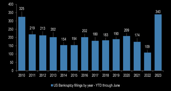 Here is what a high inflation slow growth environment looks like for some in our economy, measured by the YTD BK filings:
