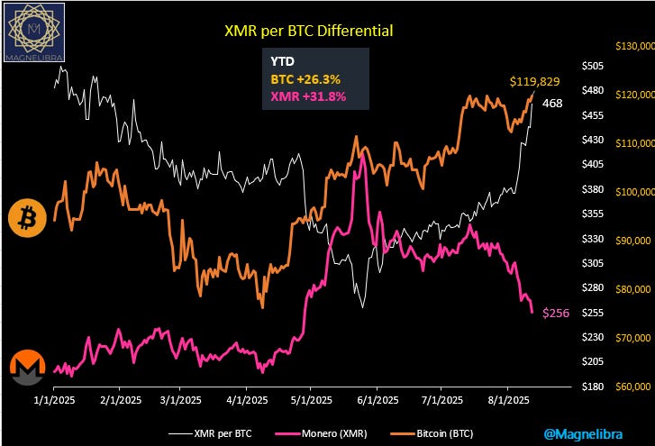 For all those looking for Monero’s demise, especially the US Treasury and Federal Reserve, know that despite all the delistings, all the attempts to control the narrative, Monero is still up more than Bitcoin for year!