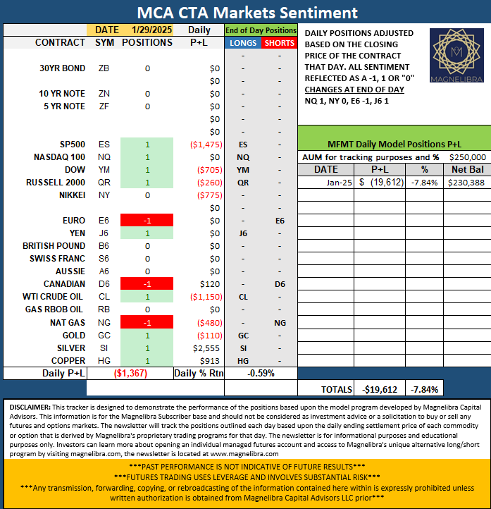Here is the MCA CTA Market Sentiment which has new equity longs, an Euro short and Yen long change on the day: