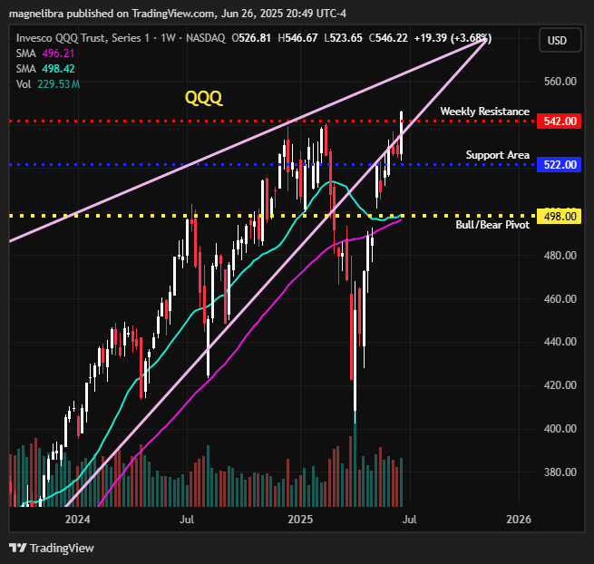 Anyway lets take a look at the markets first up the QQQ will they be able to hold 542 tomorrow or will the week close under it?