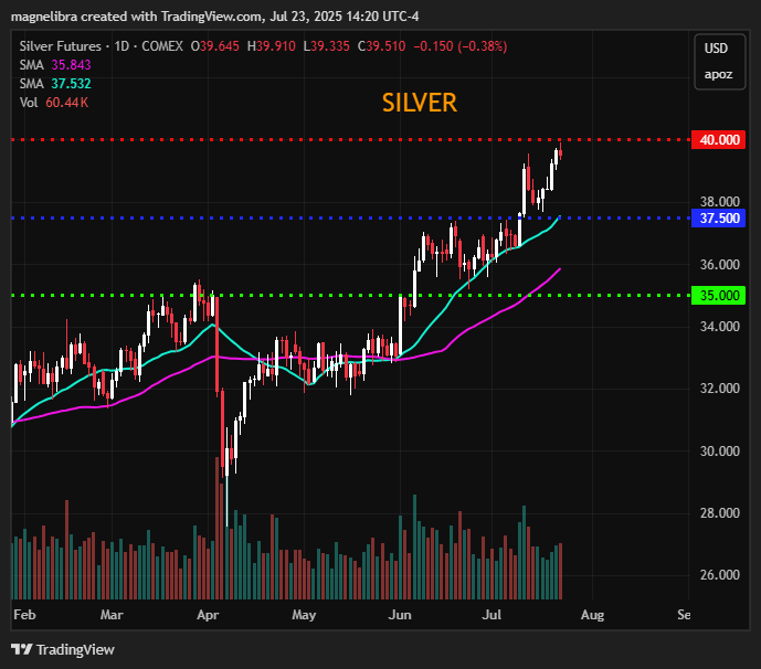 Ok that is it for now for the equity markets, as far as the futures markets, we saw Silver hit resistance, we expect initial sellers here, but ultimately we feel this level will prove to be a battle back and forth: