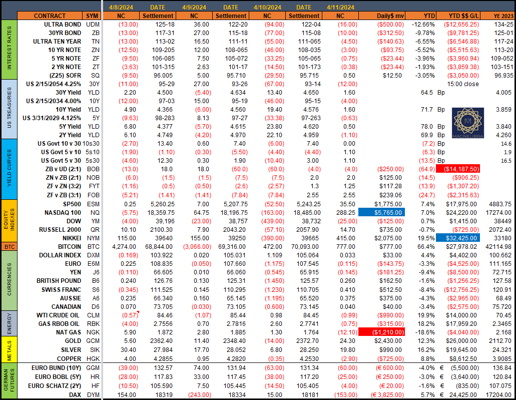 When we look at the Magnelibra Futures Model Tracker there are no changes currently: