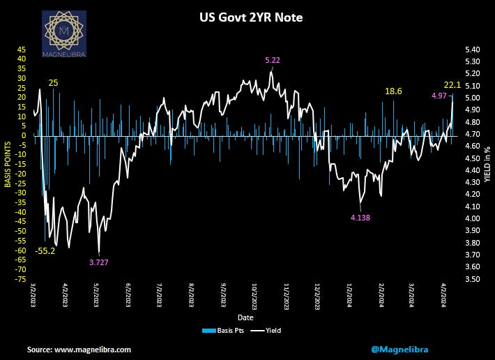 The 2Y has once again risen to near 5%: