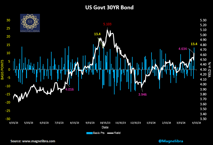 The US 30Y and 2Y charts look ugly as the bond market rose 13.4bp the largest rise in some 5 months: