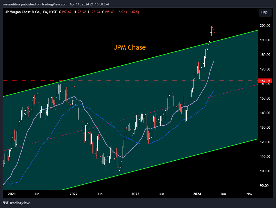 We have bank earnings up tomorrow led by JPM Chase and Magnelibra listeners know we watch this stock and it is sitting at the top of the channel seeing some decent profit taking: