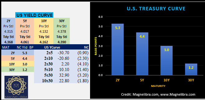 Here is pic of the US bond yield curve and the flatter close to the week: