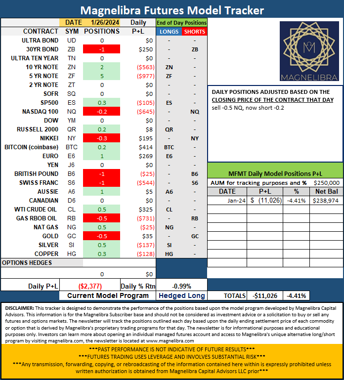 When we look at the Futures Model Tracker, we have now reversed out of the Nasdaq and have gone with a small short position there once again: