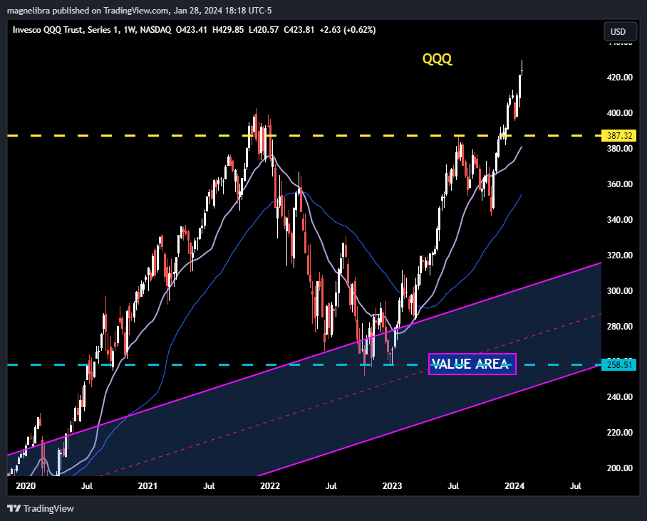 When we look at the QQQs the technical set up is ripe for a pullback here: