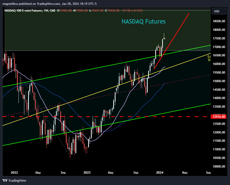 All in all we feel the move from 2023 that we have seen spill over thru January, is about to hit some turbulence and the Nasdaq close last week may lead to further confirmation of this reversal this week: