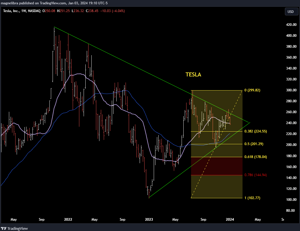 Ok finally we leave you with an update from our January 4th post and analysis upon Tesla. We posted this chart showcasing the growing acuteness of the triangle wedge formation: