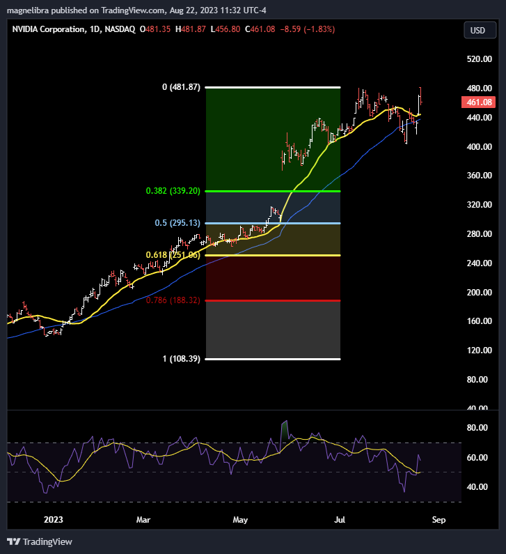 Alright, so yesterday everyone’s obviously banking on Nvidia earnings on Wednesday, all the analysts, have gone full bull raising targets and the stock was up over 8% yesterday. Today it also put in a new all time high, but the RSIs do not look good, this looks more like a rug set up to us, but if you like the longer term outlook then bulls will be bulls. Technically we do not like it and do not view appropriate risk/rewards at these levels:
