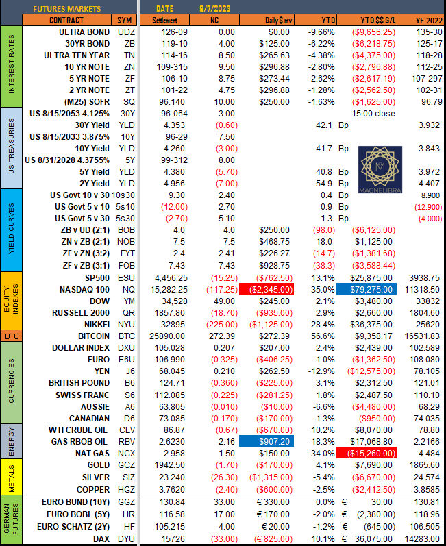 Alright let’s get to yesterdays settlements as we continue to see most markets weaker but with players in fixed income buying up some of that weakness in the front end of the US curve: