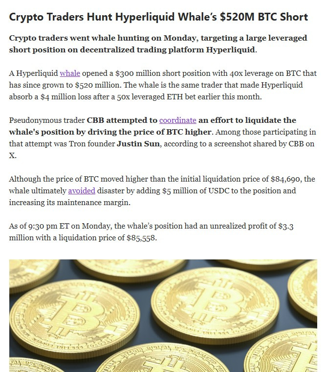 What this shows is that this levered short BTC player entered the position at an average price of $83898.20 shorting 6210.90 BTC. First off we don’t know the guys other positions, could be long futures whatever, so I never take this at face value, second we don’t know how many bullets a player like this actually has. We know large HFs will take this data and use it in their favor to push people around. In either case this is nothing more than Wall Street being Wall Street and the little guy will have zero affect upon getting a guy like this to do anything other than exert their will.