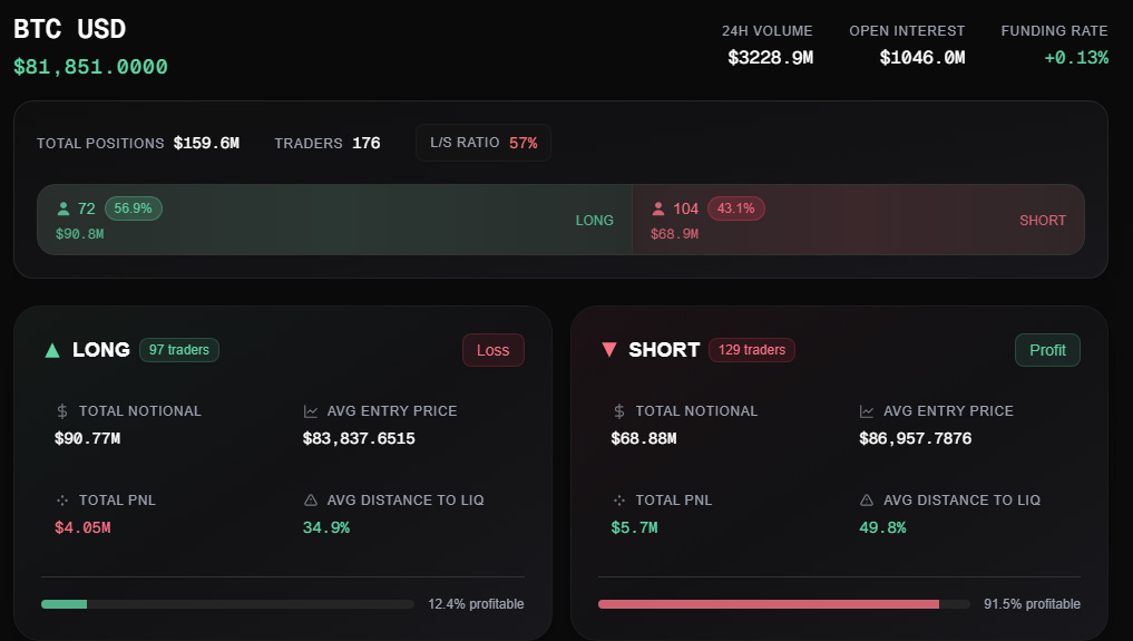 Currently the shorts shown on HyperDash have the upper hand here with BTC at $81851: