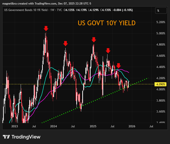 OK, switching over to the US Bond market where we look at the US Govt 10Y yields again above our 4.090% pivot: