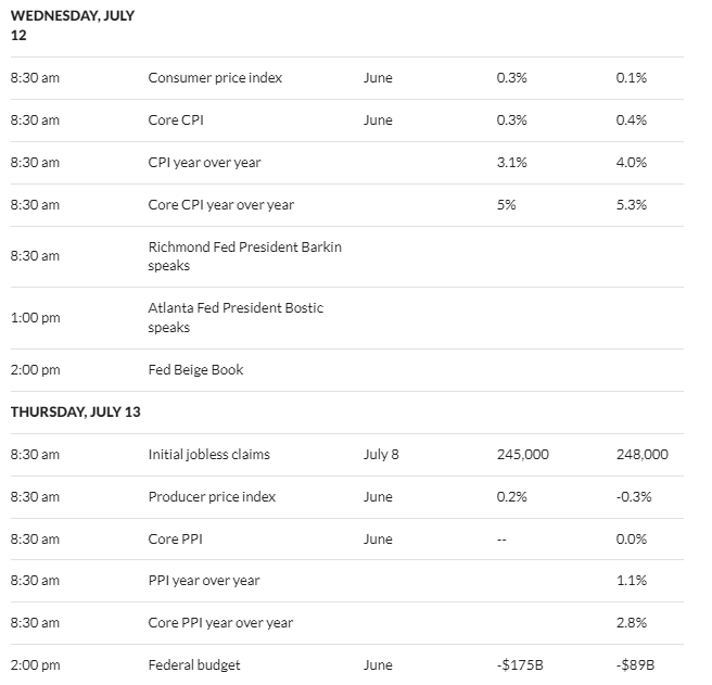 Alright we know the big data is slated for Wednesday and Thursday in the form of CPI and PPI: