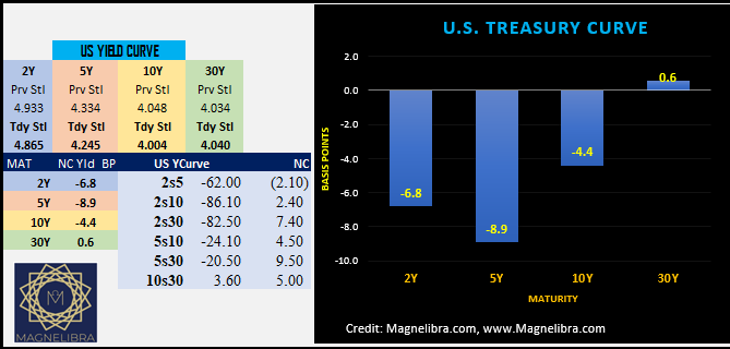 The strength of the US Govt front end notes continued today as the yield curve was well bid once again as the US Govt 5Y was the star performer on the day: