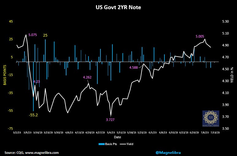Are we going to see continued destruction of the sticky inflation? It sures seems that way and the US Govt 2Y is once again backing off from the 5% level: